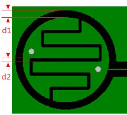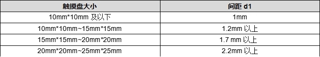 觸摸盤大小與間距 d1、d2 的關(guān)系: