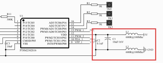 *MCU 電源電路設(shè)計(jì)需預(yù)留 L1 L2 磁珠的位置。若產(chǎn)品無法通過 10V CS 動(dòng)態(tài)測(cè)試,可加入磁珠改善