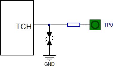 4.增強(qiáng)TOUCH腳ESD能力電路設(shè)計(jì)注意事項(xiàng) *觸摸 IC 自身管腳的 HBM ESD 通常在 class 3A(4K~8KV)水平,如應(yīng)用需要提高到 class 3B(>8KV)水平,可以在觸摸管腳上增加 ESD 器件,如下圖: