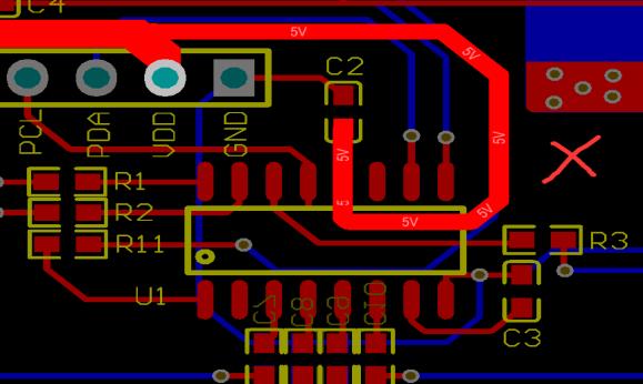 *濾波電容需注意走線方式,需經(jīng)電容再連至芯片引腳,如下圖:
